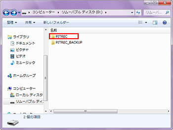 - ※自動で起動しない場合は、「PITREC on PC 2」を起動して、[ファイル]─[開く]でDNH11のmicroSDカードの中に保存されている「PITREC2」フォルダを参照します。