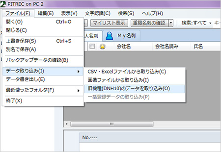 DNH10で作成した名刺データを、DNH11で利用するには、DNH11同梱のPC編集ソフト「PITREC on PC 2」を利用します。