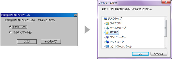 - DNH10で作成したバックアップデータ(PBUファイル)でも取り込めます。