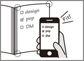 ノート見開き中心部に帯状の印刷を施し、左右のページを区切ることで、スマートフォンのスキャナアプリで片側ページを読みとりやすい仕組みとなっております。使用中のノートを切り離すことなく、その場で簡単にデジタル化できます。 |