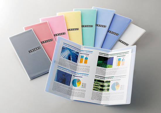 「オレッタ」の内側にはハガキやチケット、名刺なども一緒に挟むことができます。芯材にはPPシートを使用しているので、収納物をしっかりガードします。カラーは書類の内容が見える透明タイプが5色、不透明タイプが3色の合計8色です。
