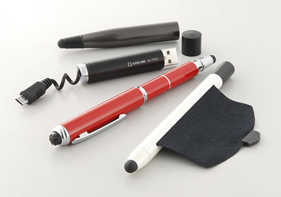 株式会社キングジム(本社:東京都千代田区)は、スマートフォンやタブレットなどの液晶画面の操作に使用するタッチペンに付加価値を付けた「クリーニングクロス付タッチペン」、「USBケーブル付タッチペン&ボールペン」、「ぶるぶる機能付タッチペン&ボールペン」を2014年6月13日(金)より発売いたします。初年度販売目標数量は各2万本です。