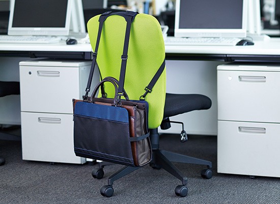 従来、オフィス内で個人の荷物の置き場所がない場合、「床に直接置くと荷物が汚れる」「荷物をデスクに立てかけると引き出しが開けにくい」などの不満点がありました。「イスの後ろのカバン置き」は、このような背景に着目し、オフィスチェアの背もたれにある「今まで使われていなかった空間」を荷物置きとして有効活用する、オフィス環境改善用品です。