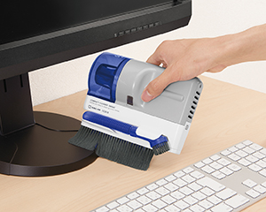 「スミサット」は、デスクの上に置いても場所をとらない充電式の小型掃除機です。本体はコンパクトで、パソコンの裏など、一般的な掃除機では届きにくい細かい場所の掃除に適しています。