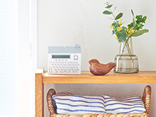 - インテリアや雑貨でも人気の高い「北欧風デザイン」を採用し、「おうち」をモチーフに細部までこだわったデザインです。インテリアの一部としてお部屋に飾っておき、使いたいときにすぐに使用することができます。また、コンパクトな手のひらサイズで暮らしのさまざまなシーンにもなじみます。