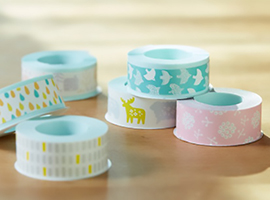 また、“こはる”専用フィルムテープも同時発売いたします。テープの図柄は、本体のデザインに合わせ、北欧風デザインを採用しました。水はねを気にせず使用でき、キッチン用品のラベリングなど、幅広い用途でご使用いただけます。ラインアップは、15mm幅サイズ3種類と、スリムな11mm幅サイズ3種類の計6種類です。