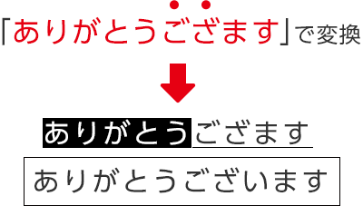 付属語に対する入力ミスを変換した際に、修復候補が表示されます。