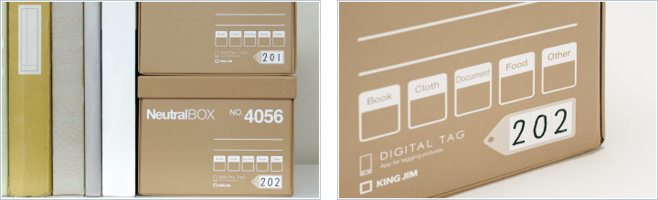 箱の上に物を積み重ねてしまい取り出すのが面倒なときにも、予め箱の中身の写真を撮影しタグ番号をつけておけば、箱をあけなくても写真で中身の確認ができます。