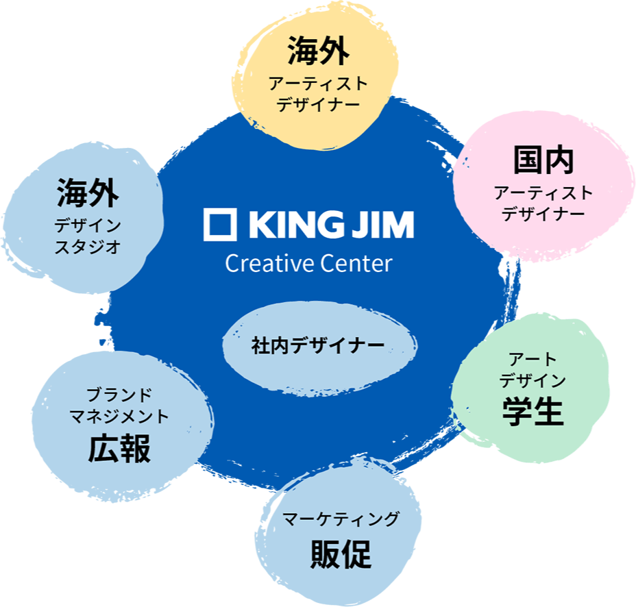 デザインを強化するため、「キングジムクリエイティブセンター」を設立しました。社内デザイナーだけでなく、国内外のクリエイターを巻き込み、広報や販促部門とも連携し、キングジムデザインを総合的にプロデュースすることを通じてブランド価値向上を目指します。