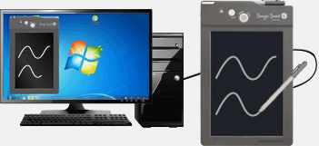 仮想デスクトップツール「バーチャルデスクトップ コンパニオン」をPCにインストールすることで、Boogie Board Rip上で記入した内容を、PC画面にリアルタイムに表示しながら操作することができます。