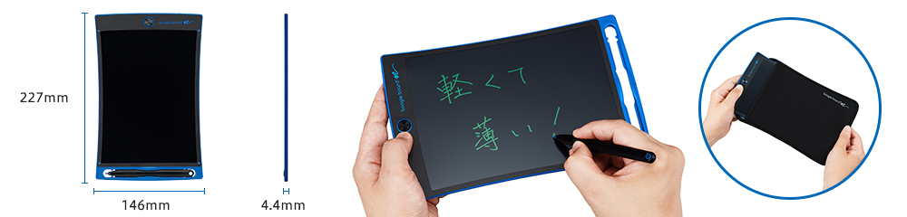 厚さ4.4mm・重さはわずか110g。いつでもどこでも持ち運びができ、必要な時にサッと取り出して使うことができます。 また、持ち運びに便利な収納ケース(別売)も用意しています。