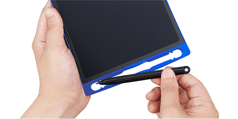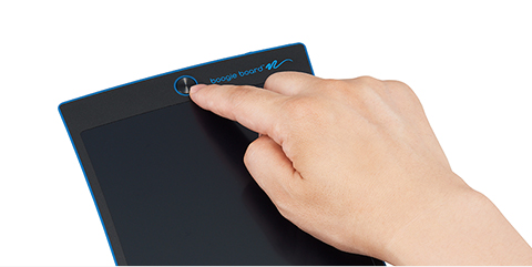 磁性体を使った筆談器と異なり、文字を消す際にレバー操作などは不要、ボタン一つでパッと文字を消すことができます。