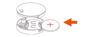 - 古い電池を横にスライドさせて外し、電池の向きに注意して新しい電池を挿入してください。