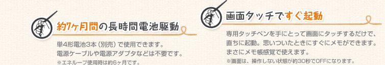 | 電池寿命 | 単4形アルカリ乾電池:約7ヶ月、単4形エネループ 約6ヶ月