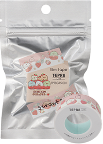 すみっコぐらしのキャラクターがプリントされた「テプラ」Lite専用のフィルムテープです。