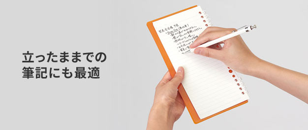 スペースを取らず、コンパクト。デスク上での使用や、立ったままでの筆記にも便利。