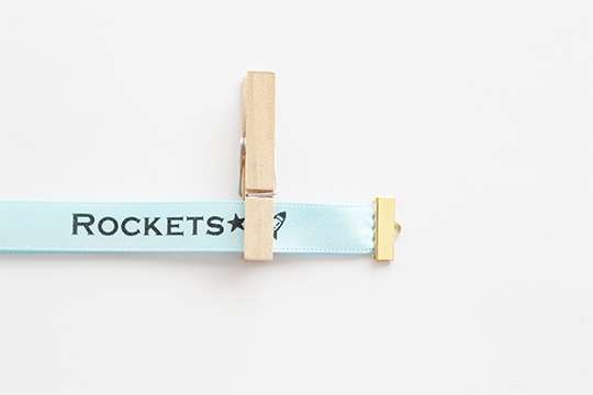 ①のリボンを裏合わせにして重ね、クリップで留める。
