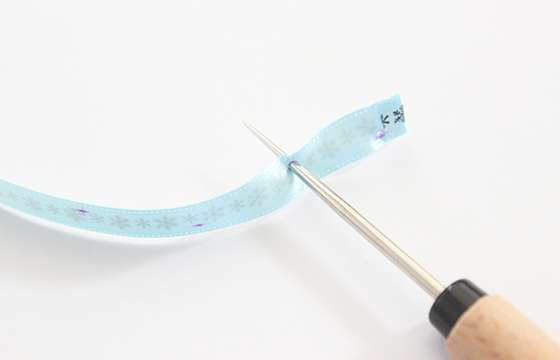 リボンの上下の端から2~3mmほどの_位置に印をつけていく。