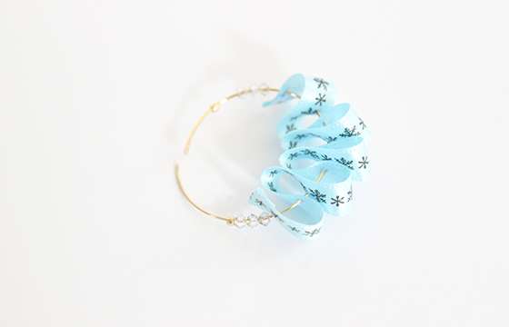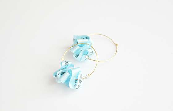 リボンを金具に通すだけ簡単に作れるフリルのピアス