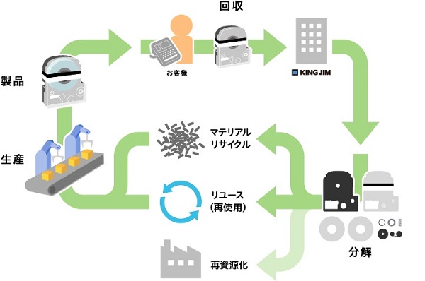 「テプラ」の使用済みPROテープカートリッジを回収し、再資源化またはリユース(再使用)によるゴミの減量化を図っています。