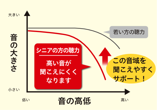 聞き取りにくい中高音域を補強しハッキリ聞こえます