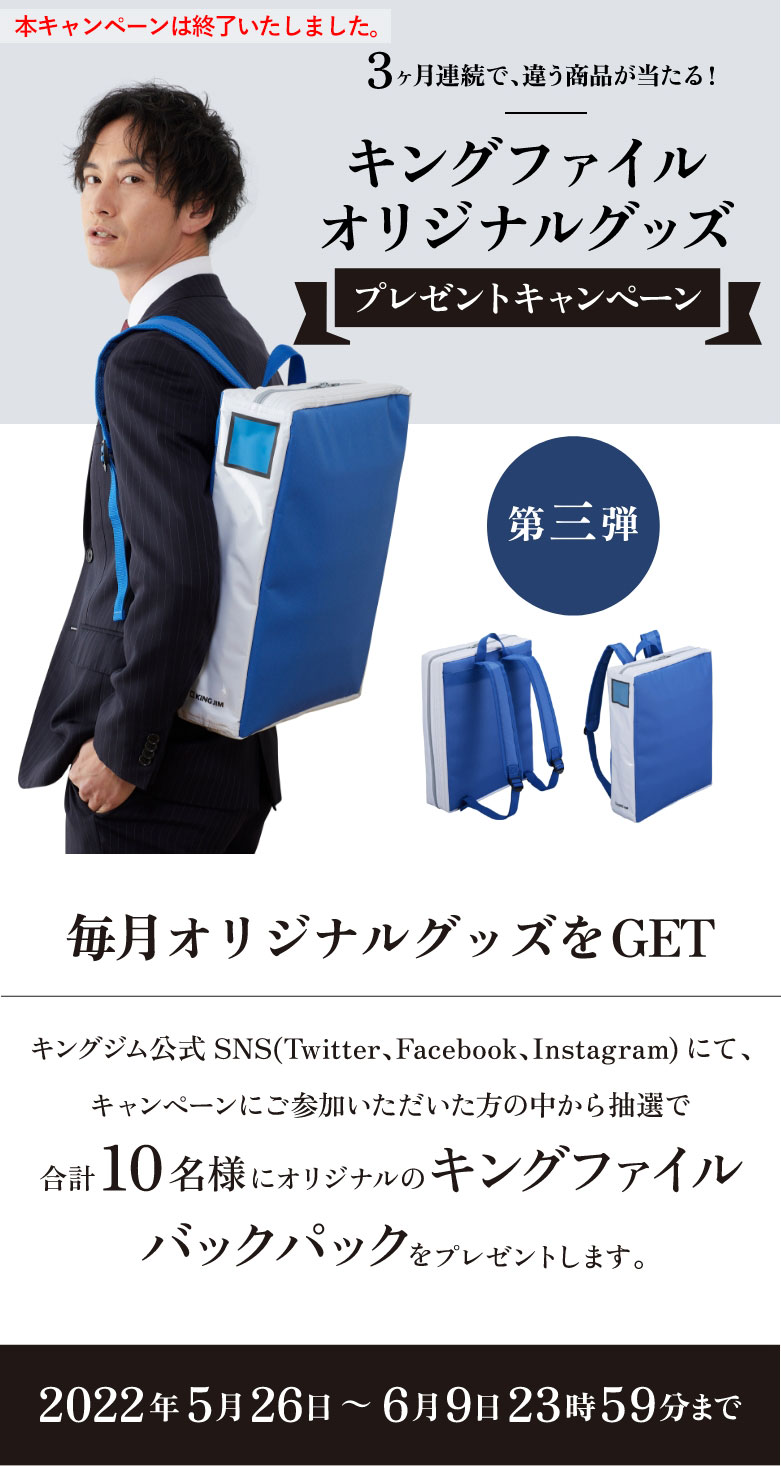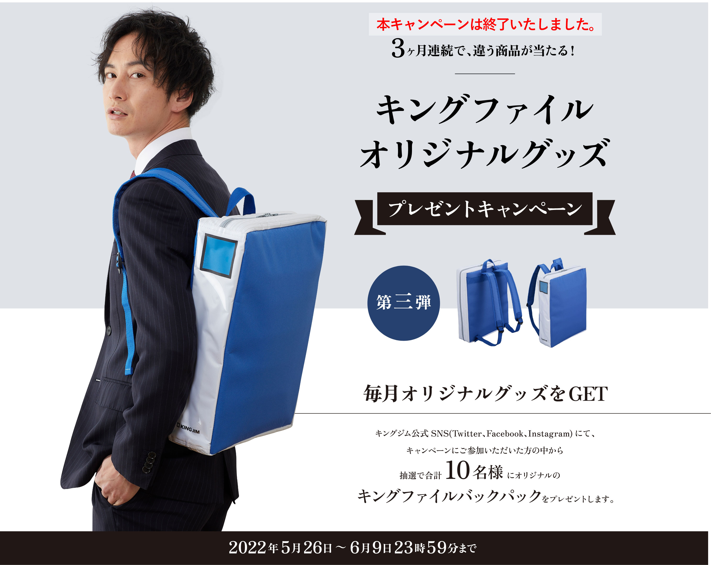 3ヶ月連続キャンペーン、最後は「キングファイルバックパック??」です!毎日の通勤はもちろん、商談時にも持ち歩こう!10名様に当たります!@kingjim をフォロー&このツイートをRT