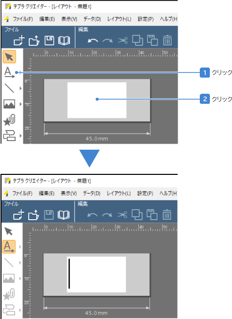 テキストブロック内に文字カーソルが表示され、文字を入力できる状態になります。