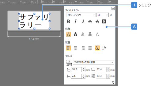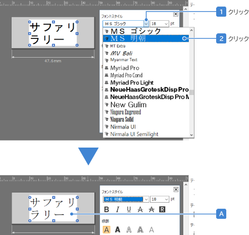 テキスト設定画面の[フォントスタイル]で書体を指定する