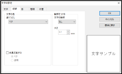 文字を白黒反転します。反転したときの背景をベタ(インク色)にするか透明にするかを選択できます。 |