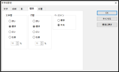 タブをクリックし、それぞれの項目を設定します。設定の結果は、右側のイメージで確認できます([間隔]タブは除く)。