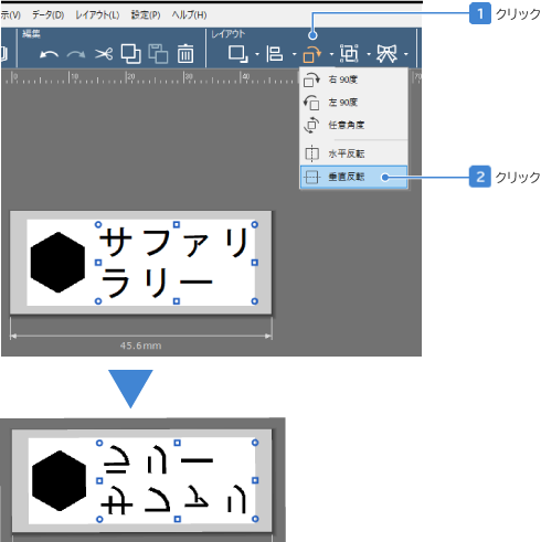 ここでは、テキストブロックを垂直反転する方法を例に説明します。