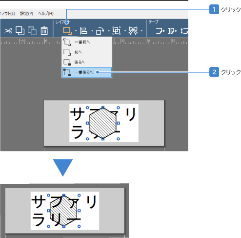 ここでは、図形ブロックをテキストブロックの背面に移動する方法を例に説明します。