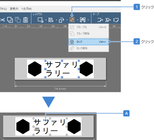 テキストブロックや図形ブロックをロックすると、そのブロックが編集できなくなります。誤って変更すると困る内容は、ロックしておくと安心です。