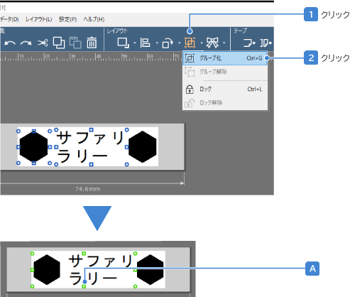 選択しているブロックがグループ化されます。また、ハンドルが緑色で表示されます(