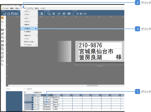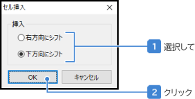 挿入位置の直後から始まるセルまたはセル範囲を選択し、[データ]の[セル挿入]を選択する