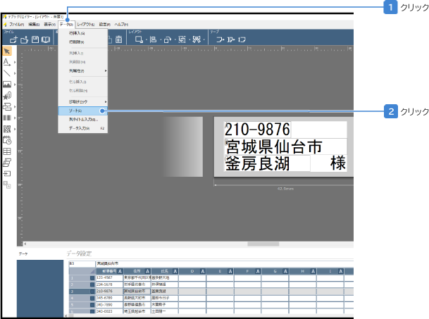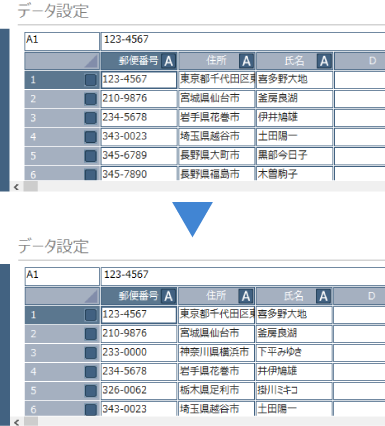 行の表示順を郵便番号順や読み順などに並び換えることができます。