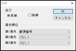ここでは、郵便番号が数字順(JISコード順)になるように並び換える方法を例に説明します。