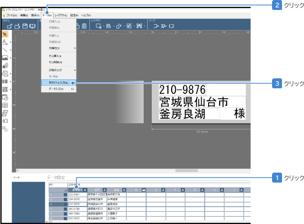 A列をクリックして選択し、[データ]−[列タイトル入力]を選択する