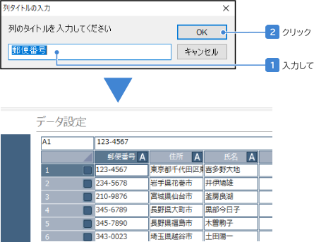 列タイトルを入力して[OK]をクリックする