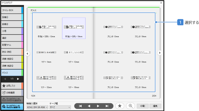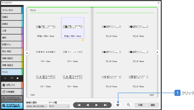 以降は、左側のカテゴリ一覧の下にある「お気に入り」を選択すると、登録したラベルデザインがカタログ上に一覧で表示され、素早く選択できるようになります。