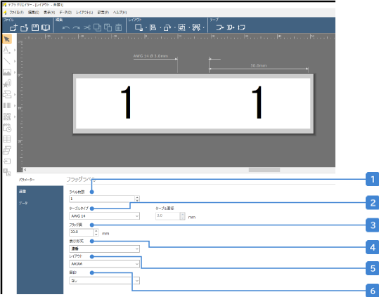 ケーブルに貼付する際の目印を印刷することができます。「4ヶ所」、「中心線」、「なし」の3種類から選択できます。