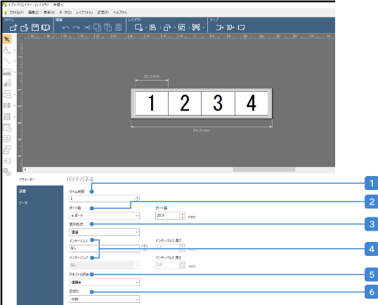 ポート数を入力します。1~50まで入力可能です。 「ポート長」から、ポートの幅を入力できます。(2.5~300mmまで) |