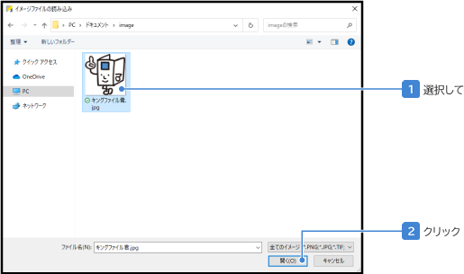 [イメージファイルの読み込み]画面にファイルがない場合は、フォルダを切り替えて読み込む場所を表示させます。