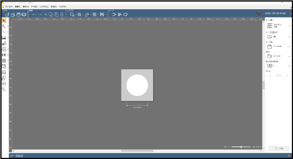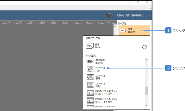 編集中のラベルで設定するときは、右側のテープ設定ツールバーの「テープ幅」でカットラベルを選択します。
