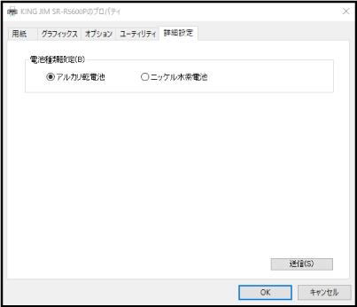 電池種類の設定機能は、特定の「テプラ」本体に対応した機能です(対象機種:SR-R5600P)。対応機種以外の「テプラ」本体には対応していません。