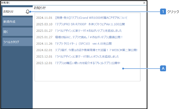 各お知らせをクリックするとインターネットブラウザが起動し、関連するWebページを表示します。