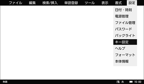- 1.「Menuキー」-「設定」-「キー設定」を選択して、「Enterキー」を押下する。