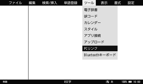 - 3.電源を入れ、「Menuキー」-「ツール」-「PCリンク」を選択して、「Enterキー」を押す。