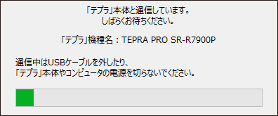- 5.アップデートが完了するまでケーブルを外したり、「テプラ」本体や、コンピュータの電源を落とさずお待ちください。