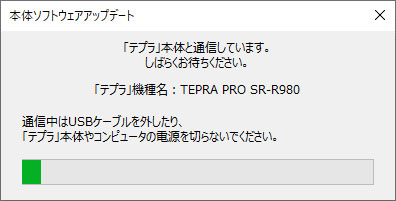 - 5.アップデートが完了するまでケーブルを外したり、「テプラ」本体や、コンピュータの電源を落とさずお待ちください。